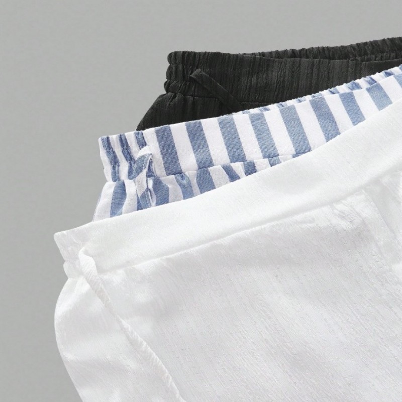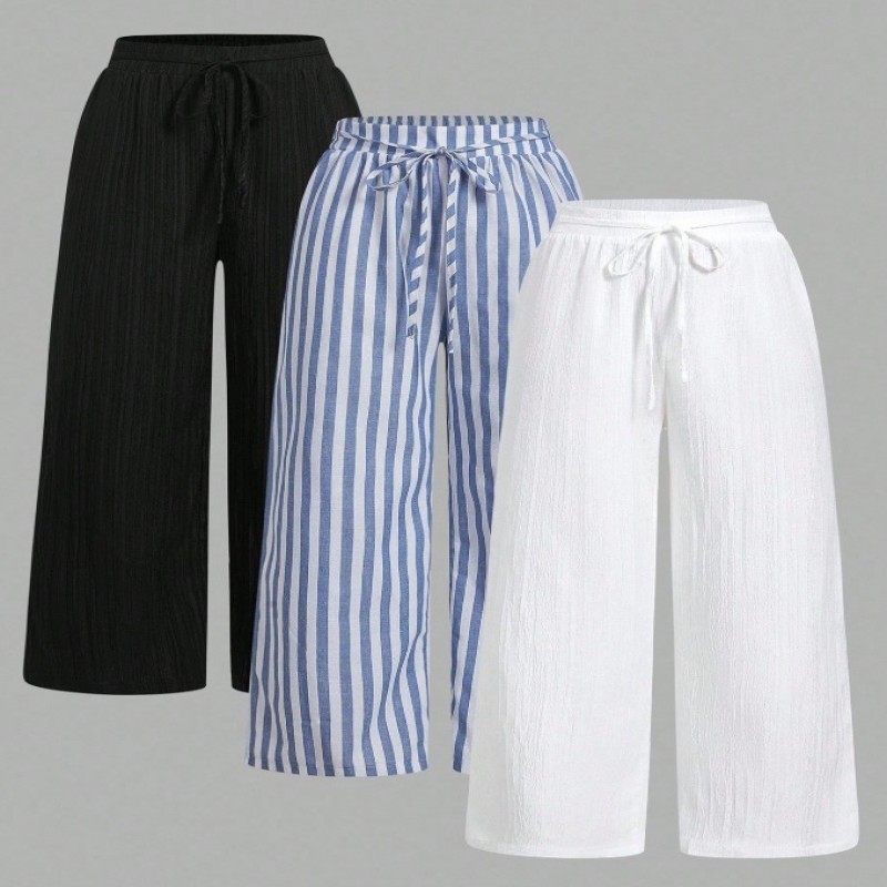 SHEIN Essnce Set de 3 pantalones casuales de mujer con estilo náutico a rayas blancas y negras, con cintura ajustable y bolsillos, de pierna recta, adecuados para vacaciones de verano