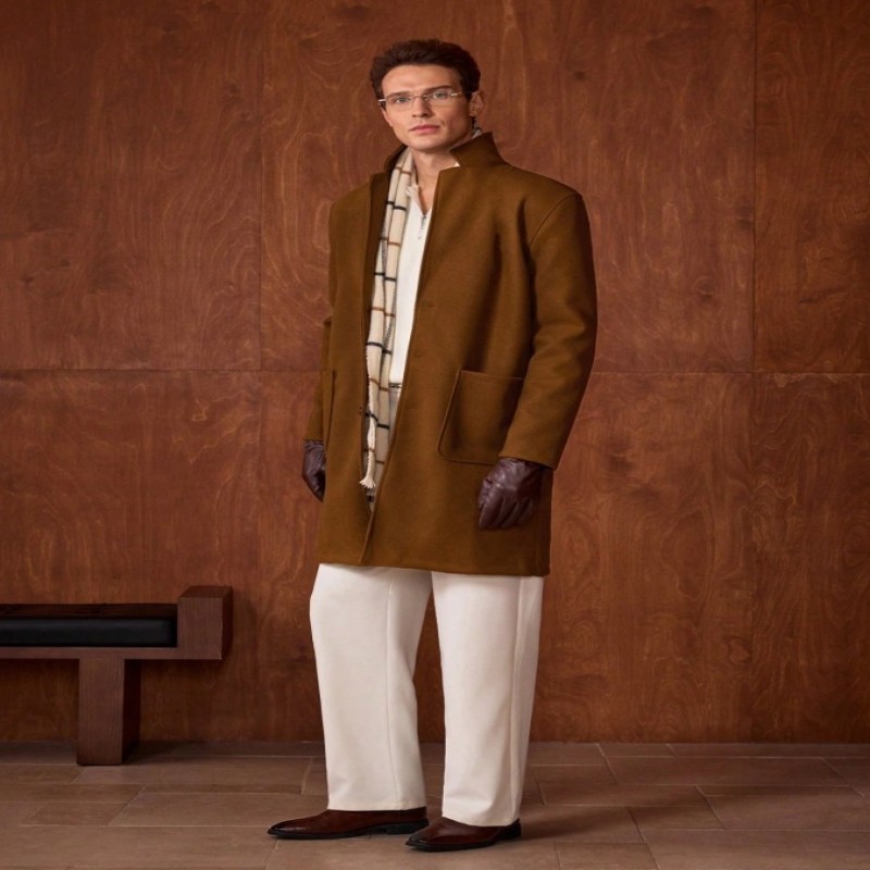 Officeau Abrigo cruzado para hombre, color marrón, para uso casual y de negocios, apto para otoño/invierno, adecuado como regalo para esposo/novio