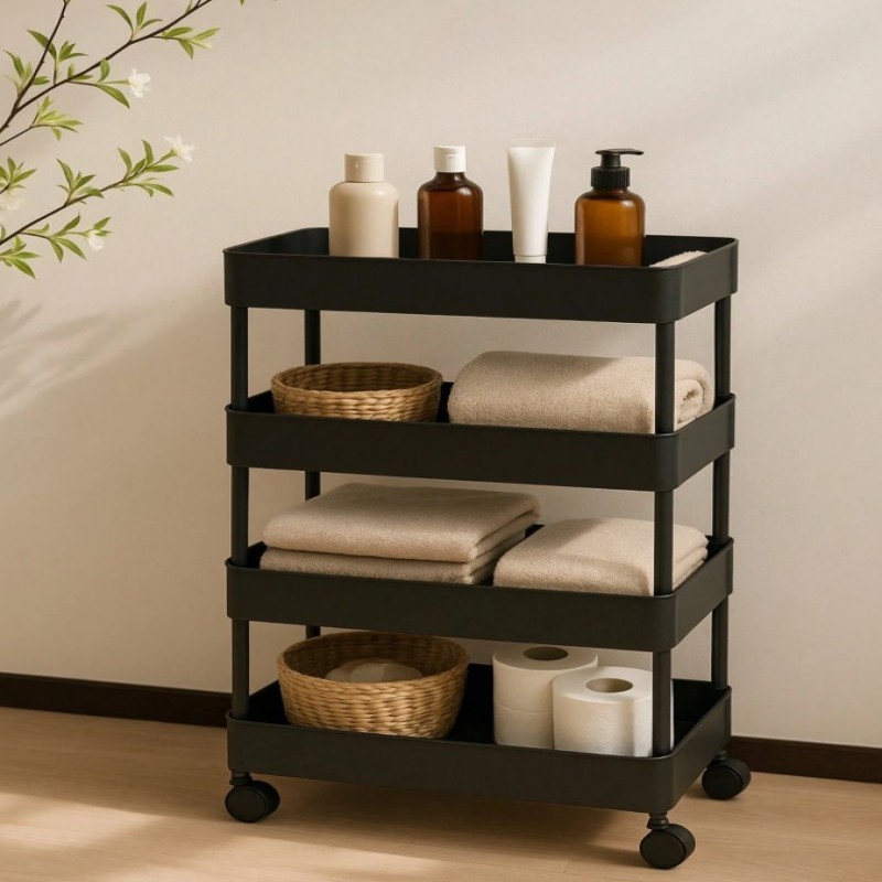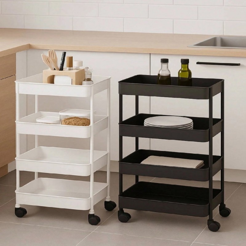Carrito de Almacenamiento de 4 Bandejas, Estilo Minimalista para Cocina y Baño