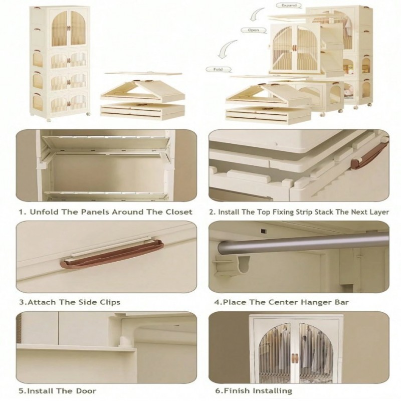 Armario de almacenamiento con estantes y perchero de pared transparente y blanco, de uso múltiple y desmontable, que se puede combinar libremente para la sala de estar, el estudio, el dormitorio, el dormitorio, regalos de vacaciones, almacenamiento, decor