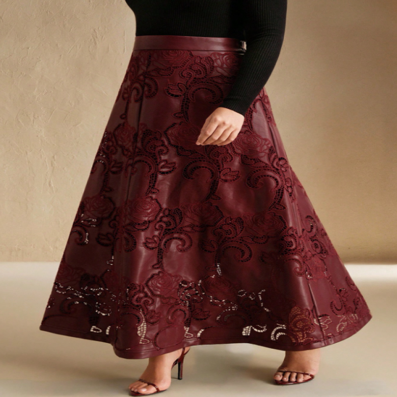 Anewsta Falda elegante de línea A con bordado, color rojo vino, para vacaciones