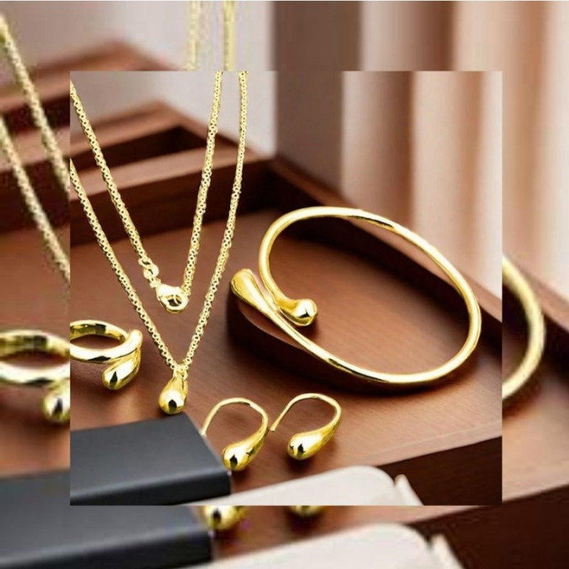 Juego de joyería de 5 piezas de gota de agua elegante - Collar, pulsera, aretes y anillo de aleación - Multifuncional y ajustable, adecuado para uso diario o para eventos de moda