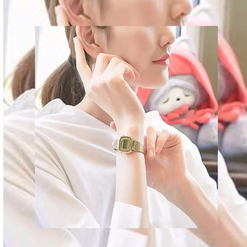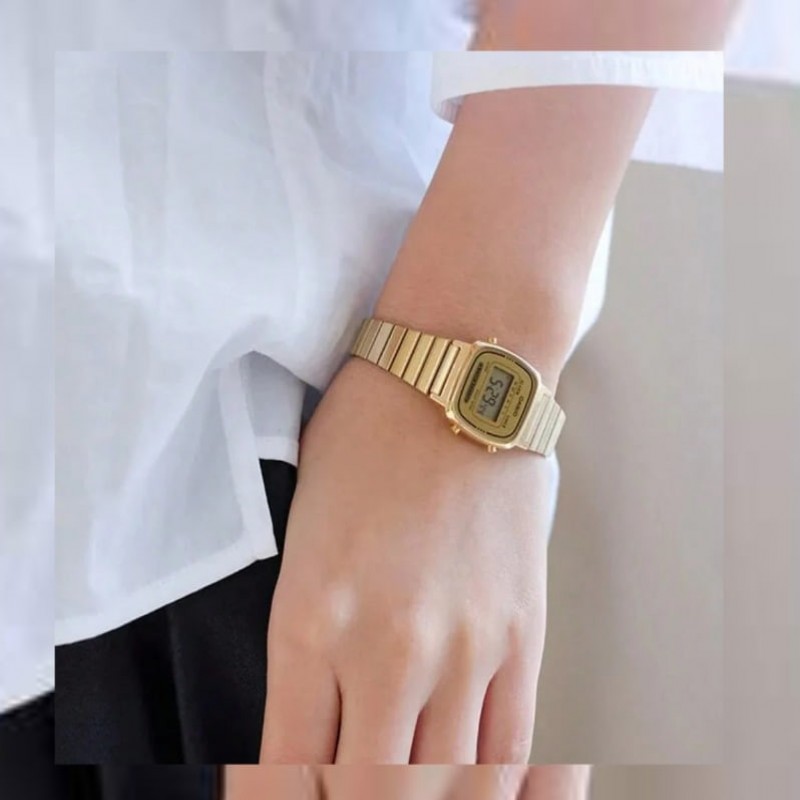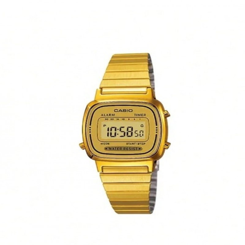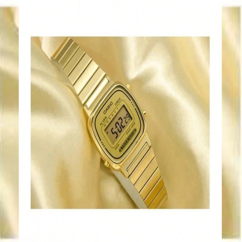 Esfera dorada de 30.3mm, pulsera de acero inoxidable, cierre plegable, cuarzo digital, modelo retro A159WGEG-1B DWLA670WGA-9D